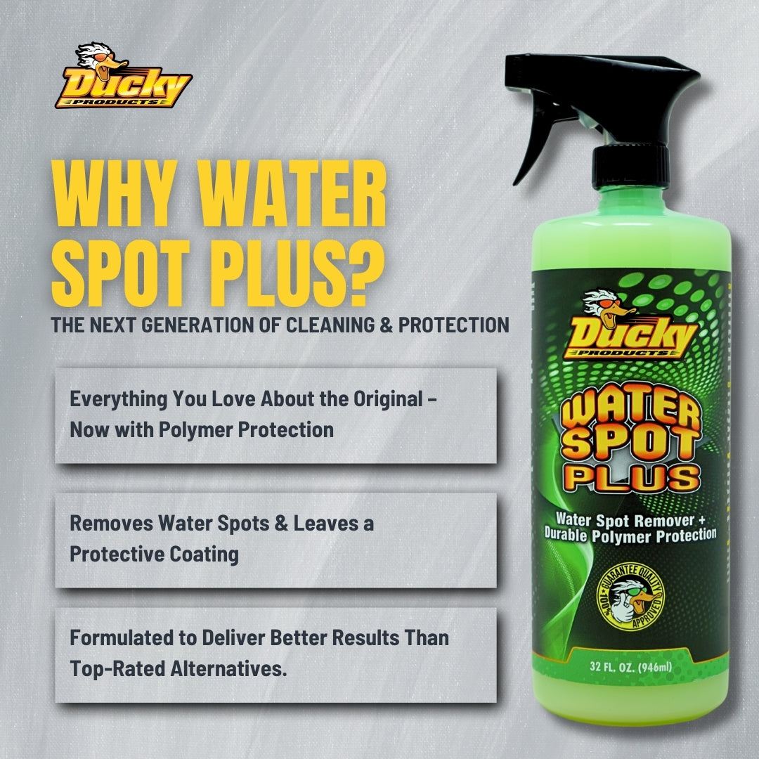 - Plus Wax Formula: Made with grade 'A' white carnauba wax. Water Spot "Plus" acts as a 2 in 1 product effectively eliminating hard water deposits while delivering a high gloss wax and UV protected surface.
